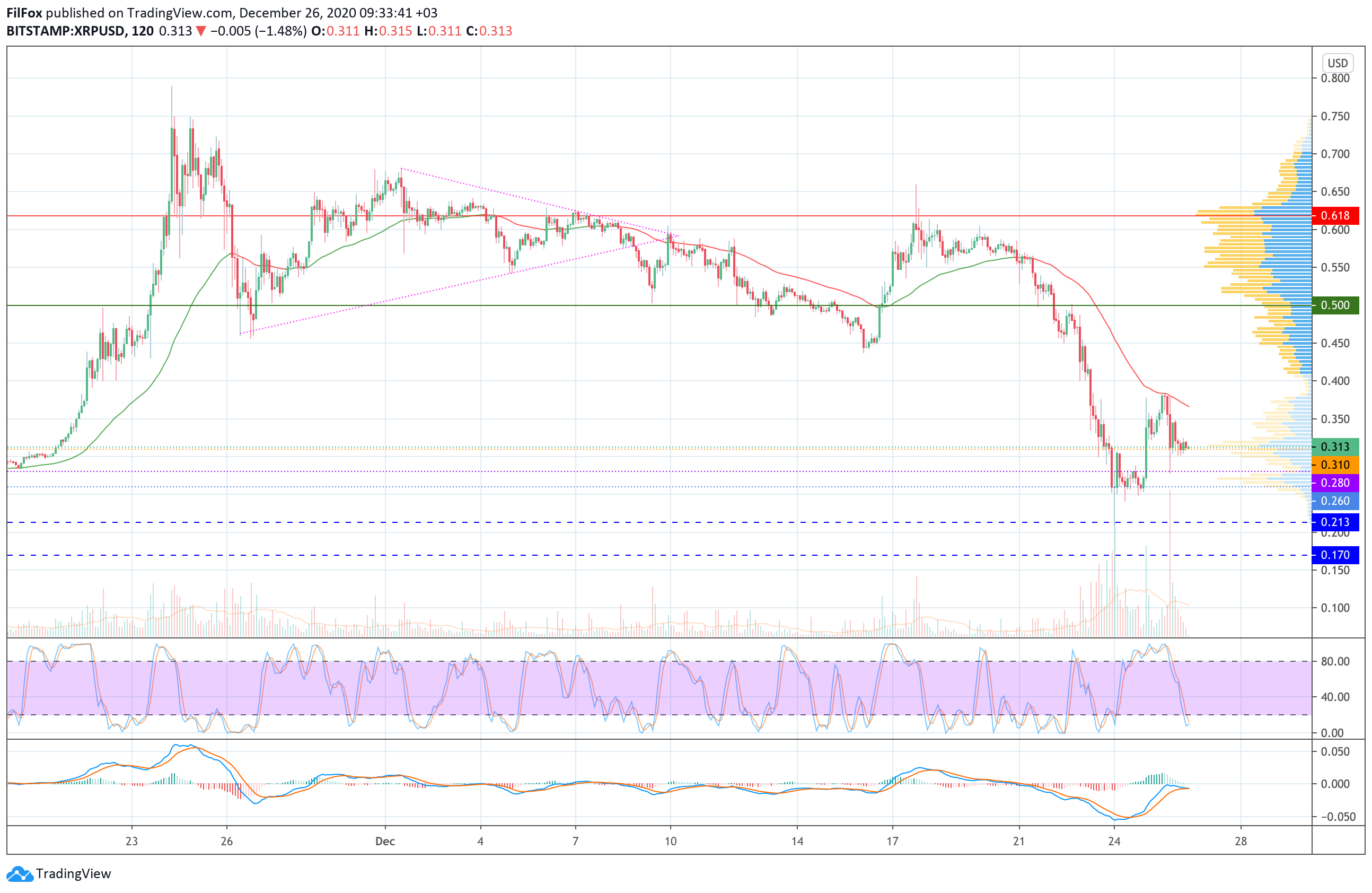 Если медвежье давление затихнет, то даже при низкой активности рынка цена Ripple восстановится выше уровня средних цен и протестирует отметку 0.400 USD.
